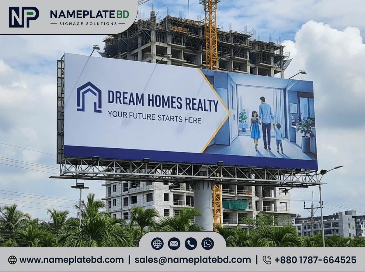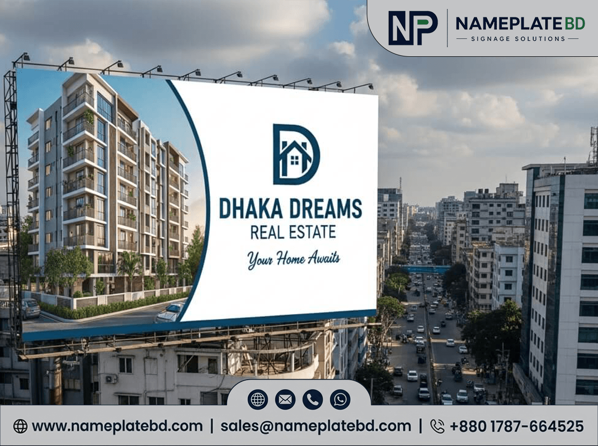 NameplateBD বাংলাদেশে প্রিমিয়াম বিলবোর্ড বিজ্ঞাপন এবং আধুনিক সাইনেজ সলিউশনের নির্ভরযোগ্য নাম। আমরা ৩ডি এক্রাইলিক লেটার, এলইডি সাইনবোর্ড এবং বিশাল আকারের বিলবোর্ড তৈরিতে বিশেষজ্ঞ। বেস্ট কোয়ালিটি ম্যাটেরিয়াল এবং ইউনিক ডিজাইনের মাধ্যমে আপনার ব্র্যান্ডকে পৌঁছে দিন অনন্য উচ্চতায়। Get the best billboard and signage service in Bangladesh with NameplateBD!