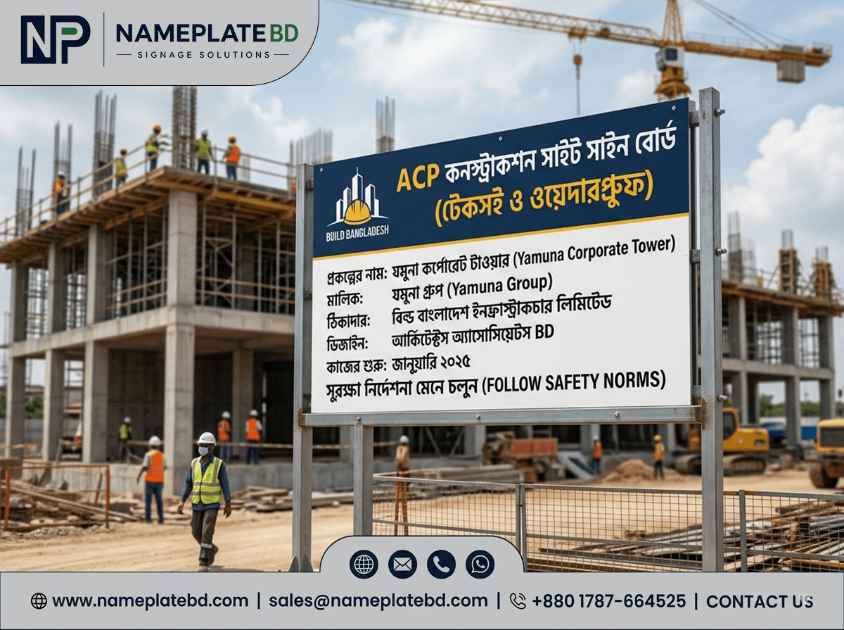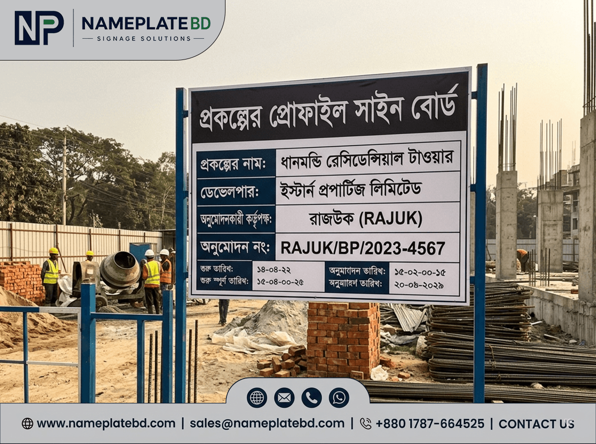 বাংলাদেশে আপনার নির্মাণ প্রকল্পের জন্য টেকসই ও প্রফেশনাল Construction Site Signage সমাধান খুঁজছেন? আমরা সরবরাহ করি উচ্চমানের Project Profile Board, Safety Sign এবং Branding Hoarding—যা আপনার সাইটের নিরাপত্তা নিশ্চিত করার পাশাপাশি ব্র্যান্ডের দৃশ্যমানতা বাড়ায়। আমাদের সাইন বোর্ডগুলো ACP, PVC এবং মেটাল ফ্রেম দিয়ে তৈরি, যা দীর্ঘস্থায়ী, ওয়েদারপ্রুফ এবং সম্পূর্ণ কাস্টমাইজেবল। ঢাকা সহ সারা বাংলাদেশে ডেলিভারি ও ইন্সটলেশন সুবিধা রয়েছে।